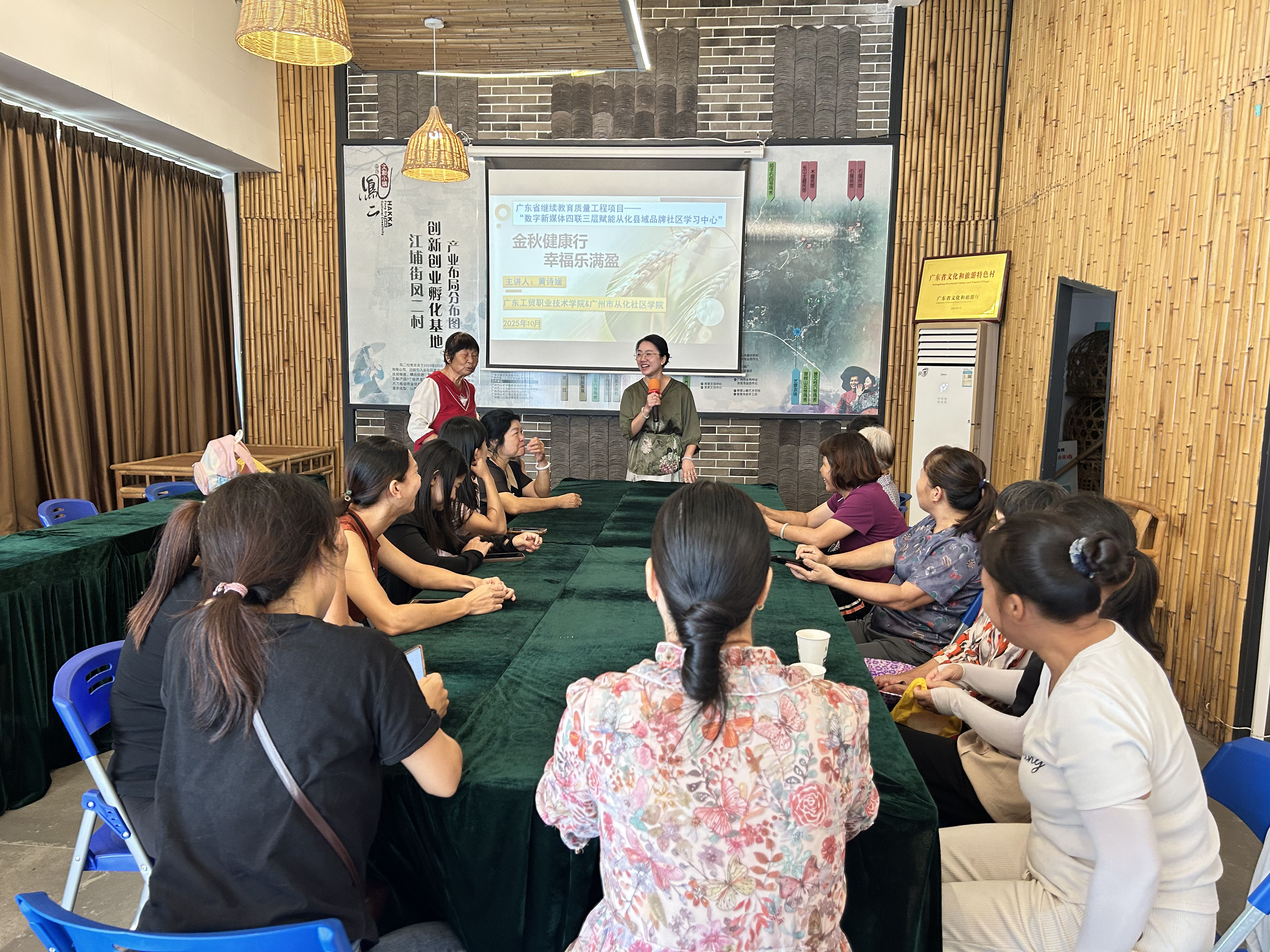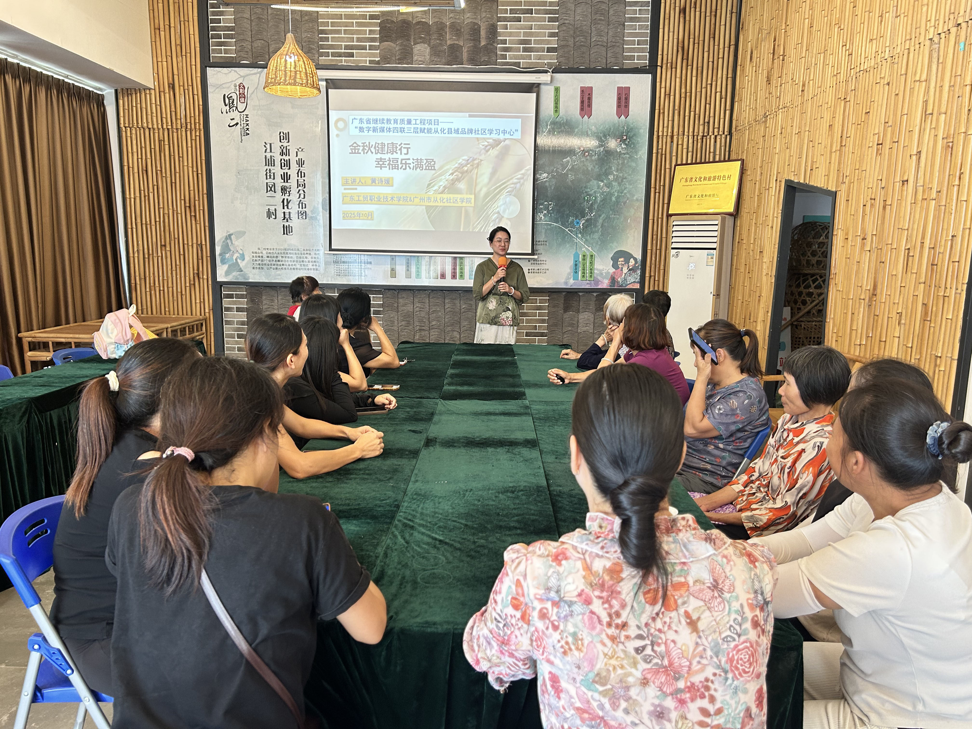 国庆假期前夕,“数字新媒体从化县域品牌社区学习”项目组成员黄诗媛老师在广州市从化区凤二村活动室开展了一场以“金秋健康行,幸福乐满盈”为主题的秋季养生讲座。几十名村民围坐听课,收获满满。