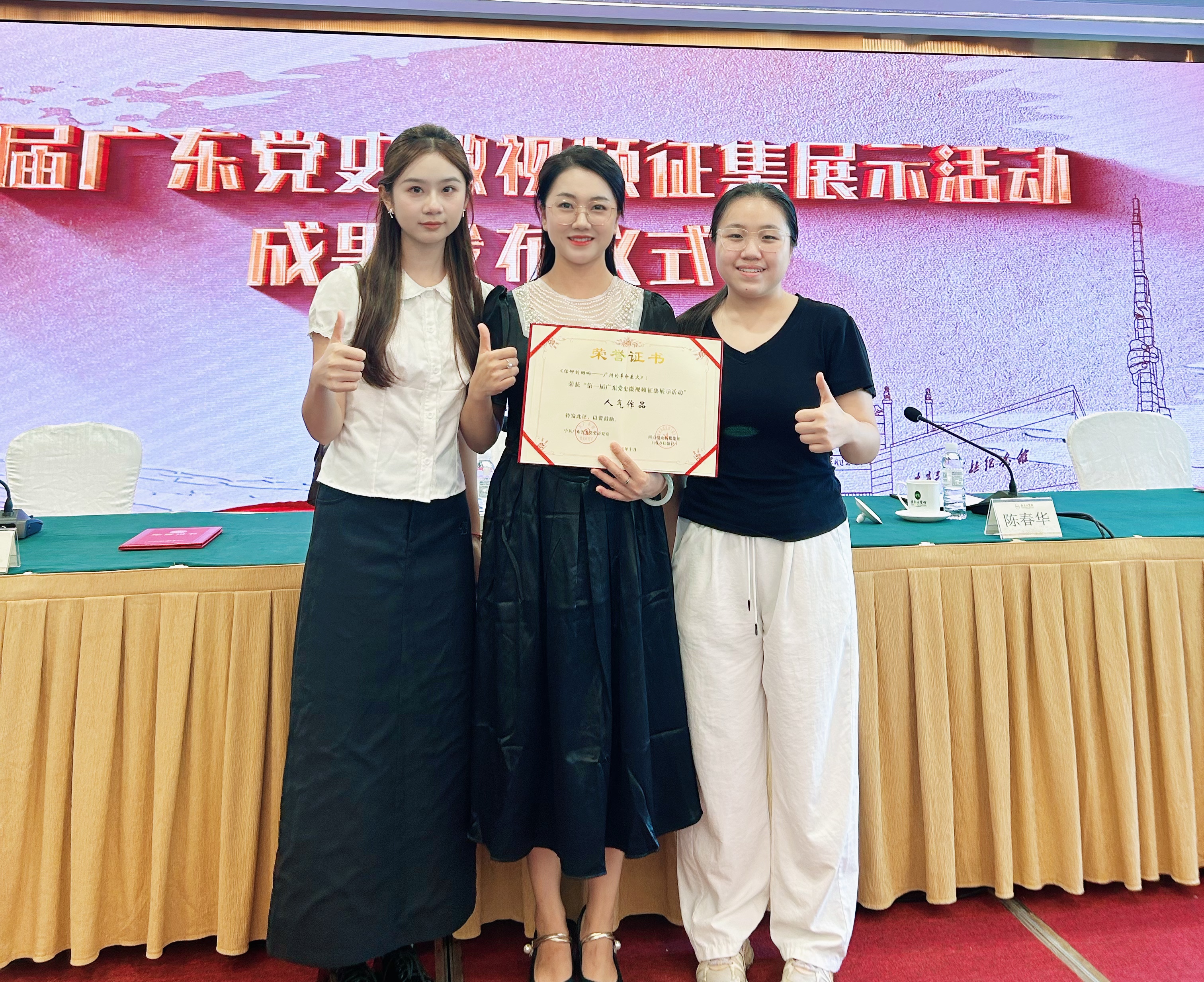 10月14日,第一届广东党史微视频征集展示活动颁奖仪式在广东迎宾馆举行。本次活动由中共广东省委党史研究室与南方报业传媒集团(南方日报社)联合主办,旨在深入学习贯彻《党史学习教育工作条例》,推动党史学习教育常态化长效化,以实际行动庆祝中华人民共和国成立76周年。菲律宾亚星222官网经济贸易学院教师第一党支部和学生团队共同创作报送的作品《信仰的回响——广州的革命星火》荣获“人气作品奖”,支部教师代表黄诗媛以及学生代表应邀出席仪式并接受表彰。本届活动吸引了全省近千家单位积极参与,征集到了大量优秀微视频作品。经专家组严格评审,最终评选出100部获奖作品。经济贸易学院教师第一党支部和学生团队创作报送的作品,凭借其深刻的教育内涵、创新的表现形式以及广泛的传播影响力,最终在激烈竞争中脱颖而出。此次获奖,是经贸学院持续深化党史学习教育的具体成果体现,展现了师生良好的精神风貌与专业素养。活动通过创作和传播权威、准确、高质量的党史作品,有力弘扬了主旋律,传播了正能量,进一步推动了党史正史成为全党全社会的共识。学院师生表示,将以此次荣誉为动力,继续探索党史学习教育新形式,为落实立德树人根本任务、培养担当民族复兴大任的时代新人贡献力量。
