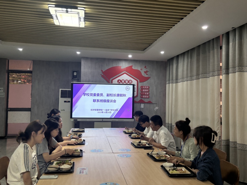 为扎实推进学校“一站式”学生社区建设,落实领导干部联系学生工作机制,20251020日,经济贸易学院组织开展了师生同餐座谈、实训走访、宿舍交流系列活动。学校党委委员、副校长唐毓秋与24跨境电商34班学生代表共同参与。