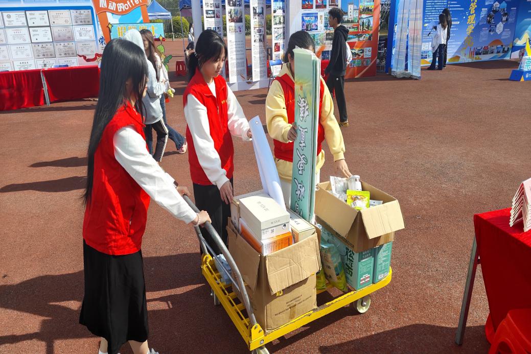 活动现场,身着红色马甲的发展对象们分工有序、密切配合。有的负责搬运物资、布置场地,确保会场整洁有序;有的在服务点位值守,耐心引导用人单位和毕业生;还有的在农产品销售区域热情介绍特色产品,协助开展直播推广。从前期物料准备到现场全流程保障,志愿者们以热情的态度和扎实的作风,为招聘会的顺利举办构筑起一道坚实的志愿服务线。
