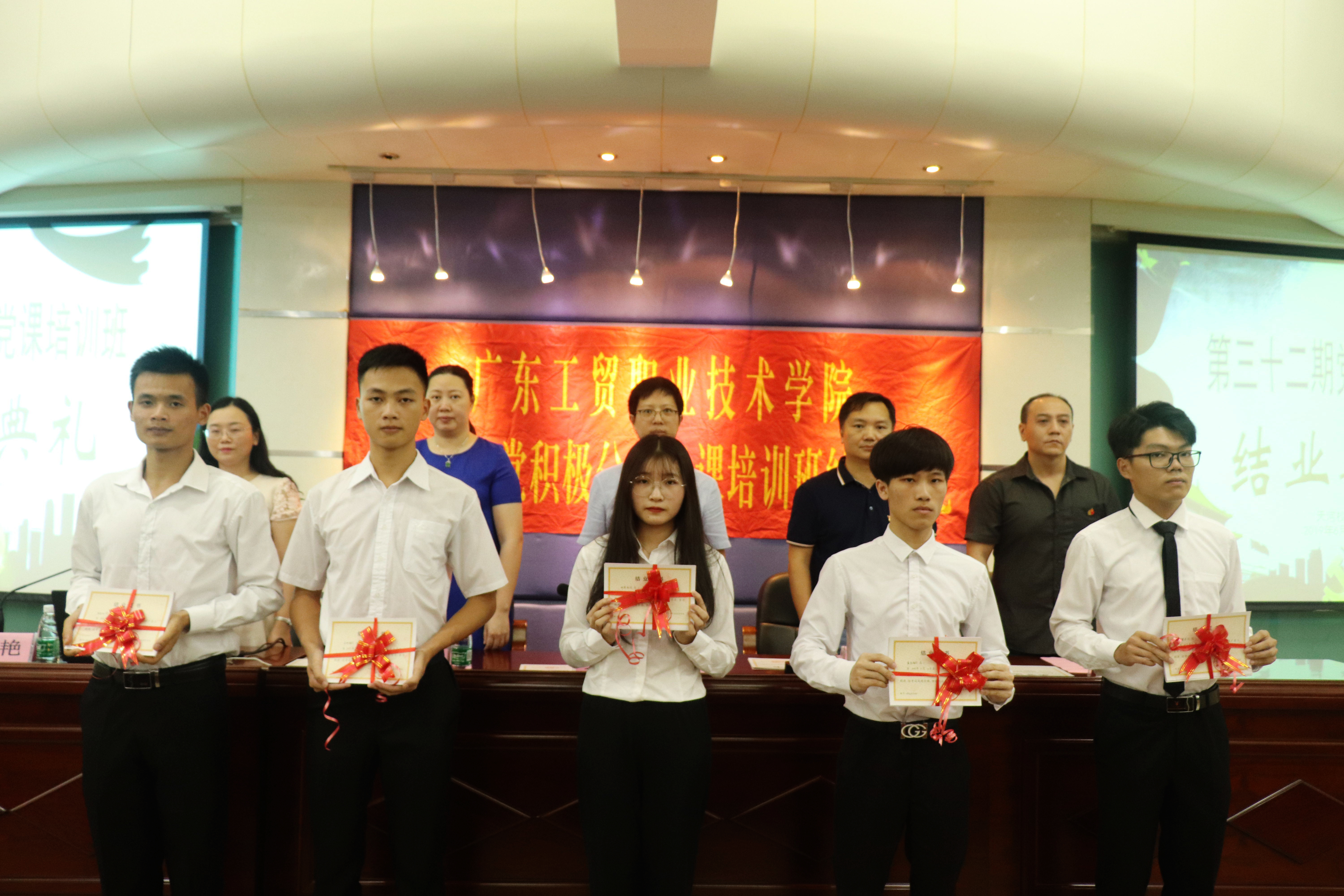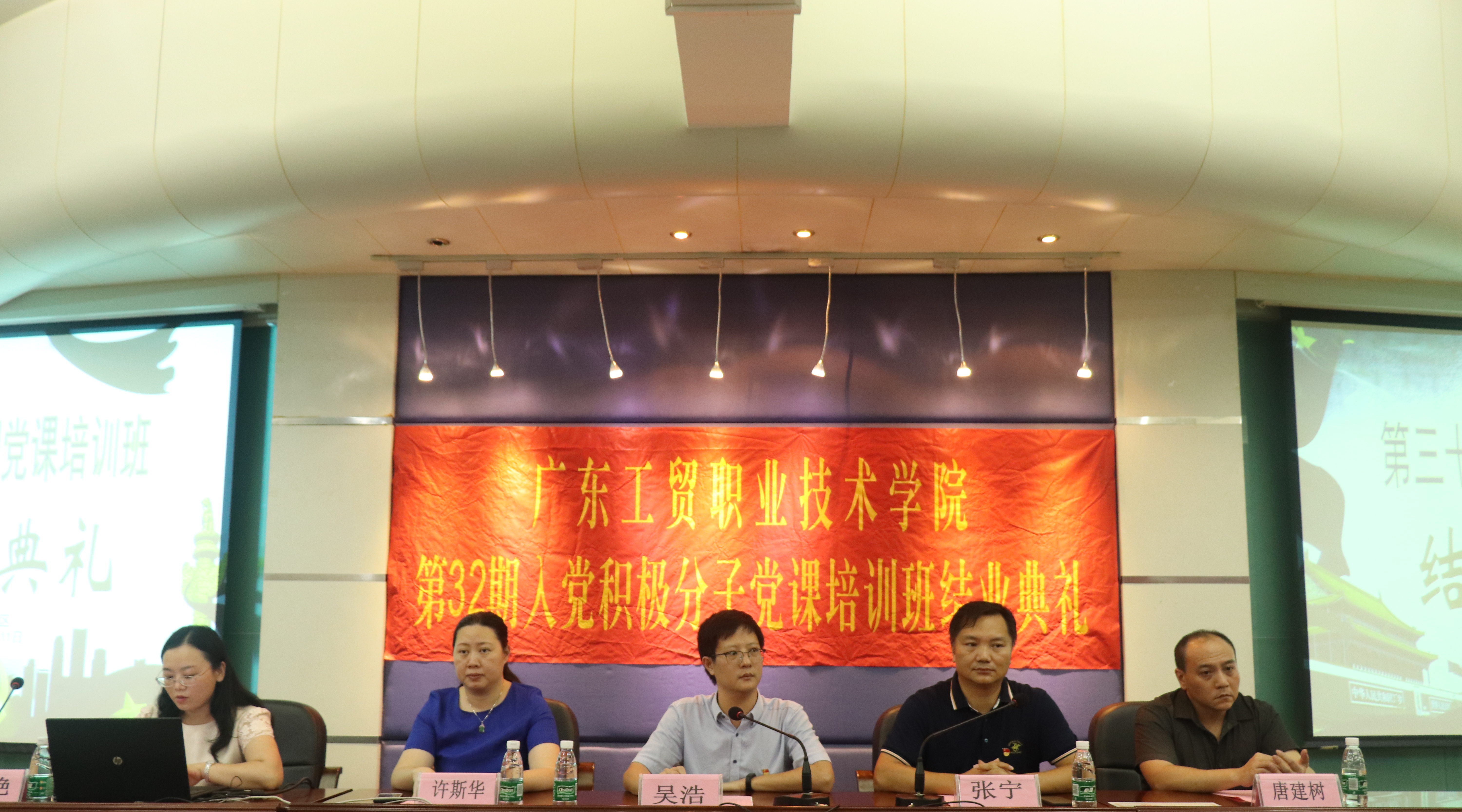为做好发展党员工作,帮助广大入党积极分子系统地学习党的基本理论、基本知识,学习领悟习近平新时代中国特色社会主义思想和党的十九大精神,进一步提高入党积极分子的思想政治觉悟,端正入党动机,树立马克思主义世界观,坚定共产主义、社会主义理想信念。学校在2019年5月14日至6月11日举办了第三十二期入党积极分子党课培训班, 6月11日下午3:15在学校报告厅开展了天河校区培训班的结业典礼,党委委员、学校办公室主任吴浩、计算机学院党总支书记张宁、学生工作部副部长许斯华、团委副书记唐建树、计算机学院党总支副书记张艳,典礼由张艳主持。