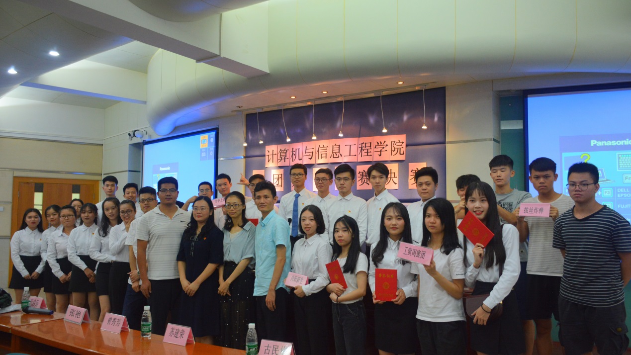 为进一步在我院广大青年党团员中贯彻落实党的十九大精神,提高党团员的政治意识,组织意识等,同时激发党团员学习党团知识的积极性,进一步向组织靠拢,计算机与信息工程学院党总支于6月18日下午在西区报告厅举办了以“不忘初心、牢记使命”为主题的第十六届党团知识竞赛决赛,出席本次决赛的嘉宾有:计算机与信息工程学院副书记张艳、学工办主任代启兵、辅导员苏建荣、古民华、曾秀芳、王培培、蒋丽君。