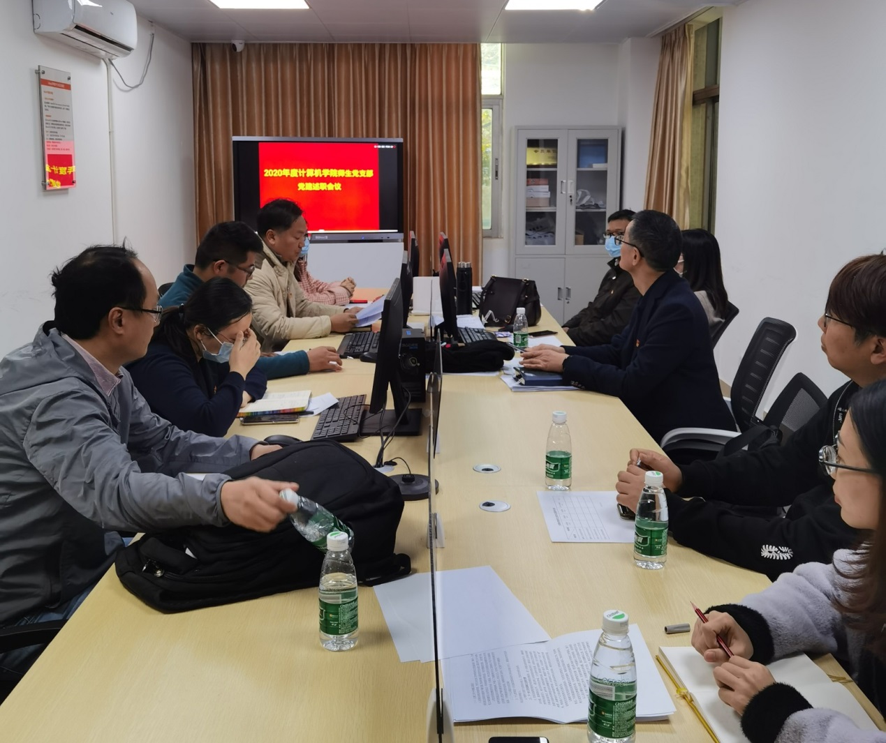 为深入学习贯彻习近平新时代中国特色社会主义思想和党的十九届五中全会精神,加强学院基层党组织建设,提高师生党支部书记的履职能力,发挥好基层党支部的战斗堡垒作用,按照上级党组织和学院党委工作要求,按照学校《2020年度基层党组织书记抓党建工作述职报告》具体部署,2021年1月5日下午,计算机学院组织召开2020年度师生党支部书记述职会议,四位党支部书记进行了党建工作述职。学院党总支书记张宁、副书记余棉水、副书记张艳等党总支委员及四位支部书记参加了会议。本次会议由党总支书记张宁主持。