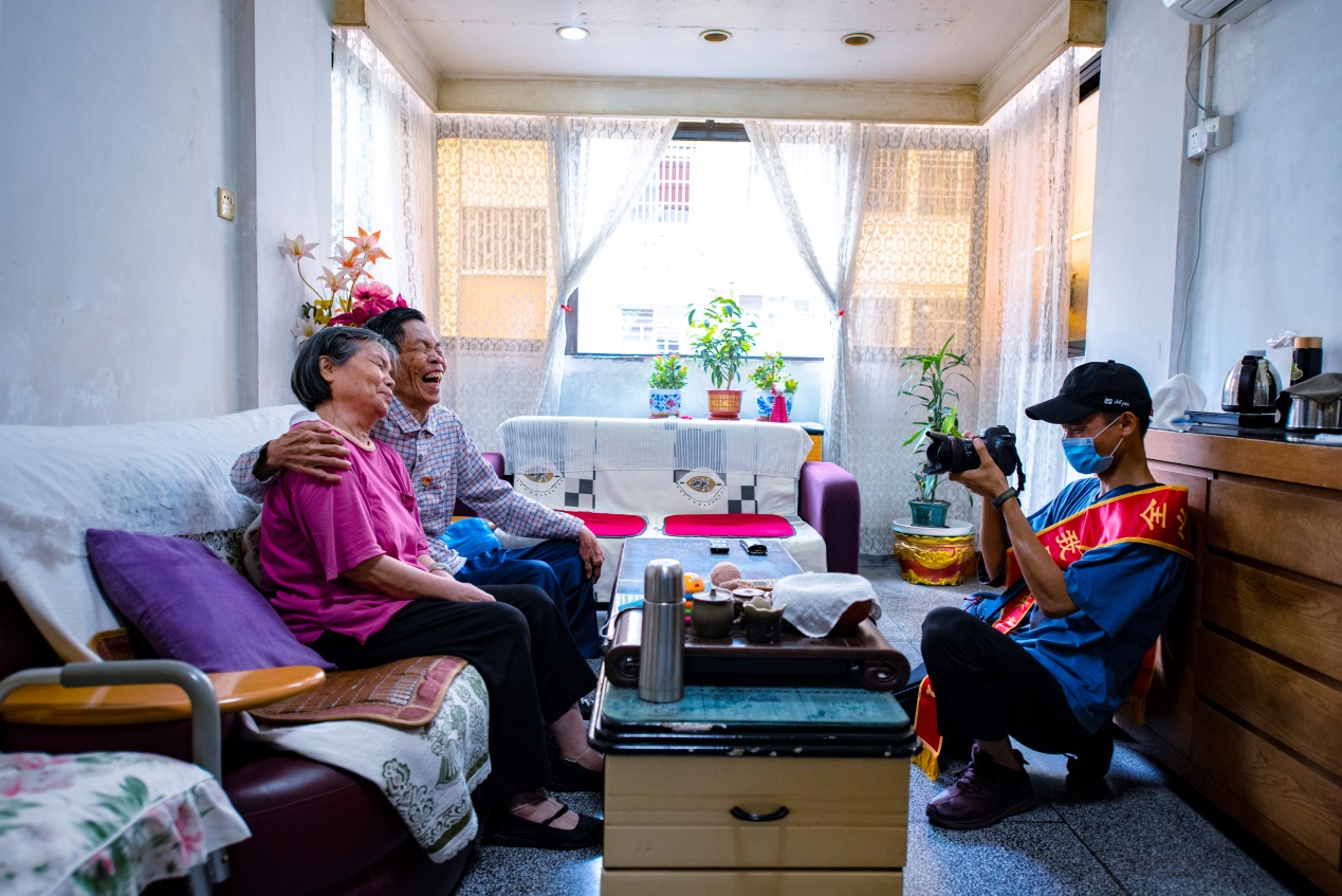 学生党员慰问老党员并拍照