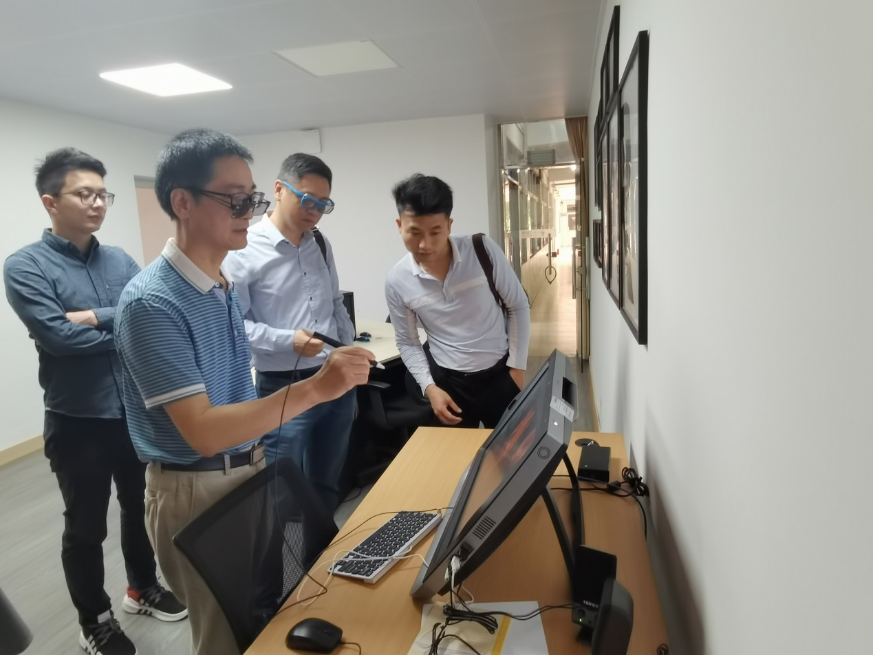 3月19日上午,广东科学技术职业学院文化与传媒学院向阳副院长一行五人来我校基于VR/AR的工程素质教育虚拟仿真实训中心进行考察,就虚拟现实实训中心建设、虚拟现实技术在专业教学中的应用等进行了经验交流。计算机与信息工程学院院长余棉水,虚拟现实与数字媒体系主任周宇、骨干教师张坡、张宇辰等参加了交流。