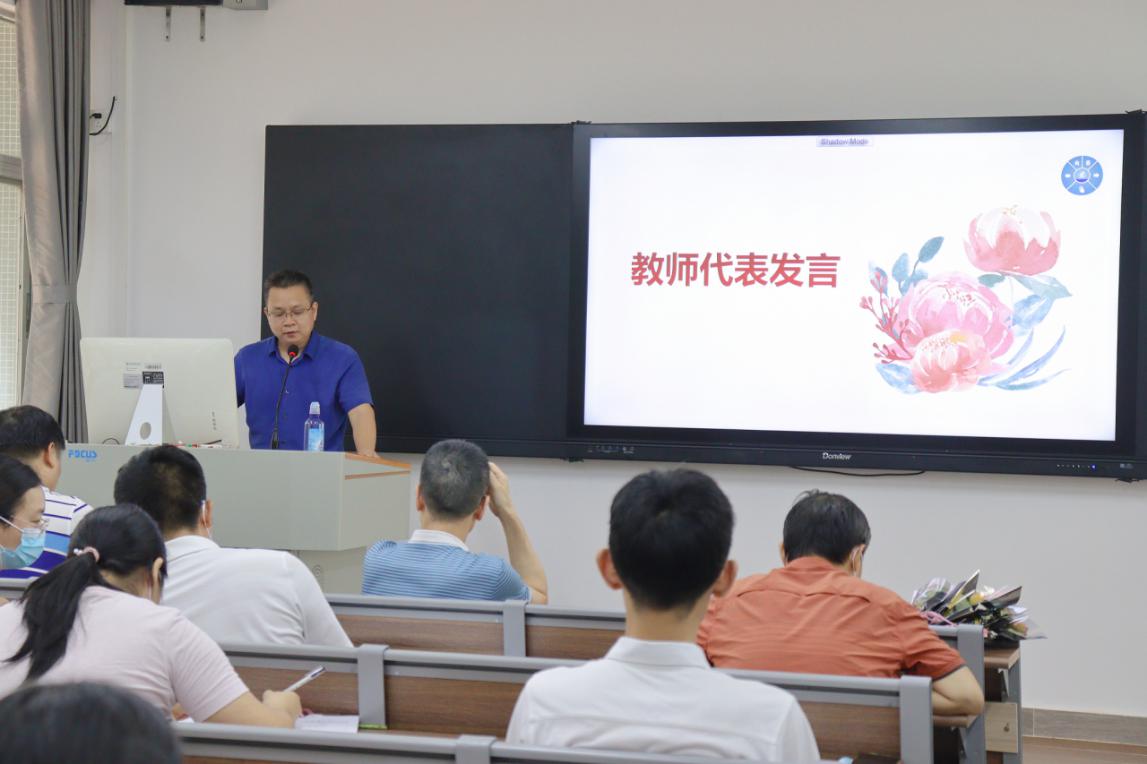 当前,计算机学院正深入学习贯彻习近平总书记“七一”重要讲话精神。我院将以本次教师节庆祝大会为契机,继往开来,扎实推动党史学习教育走深走实,积极推进“我为群众办实事”创特色出实效,从严从实抓好疫情防控和校园安全工作,进一步落实立德树人根本任务,努力培养优秀工贸人才。