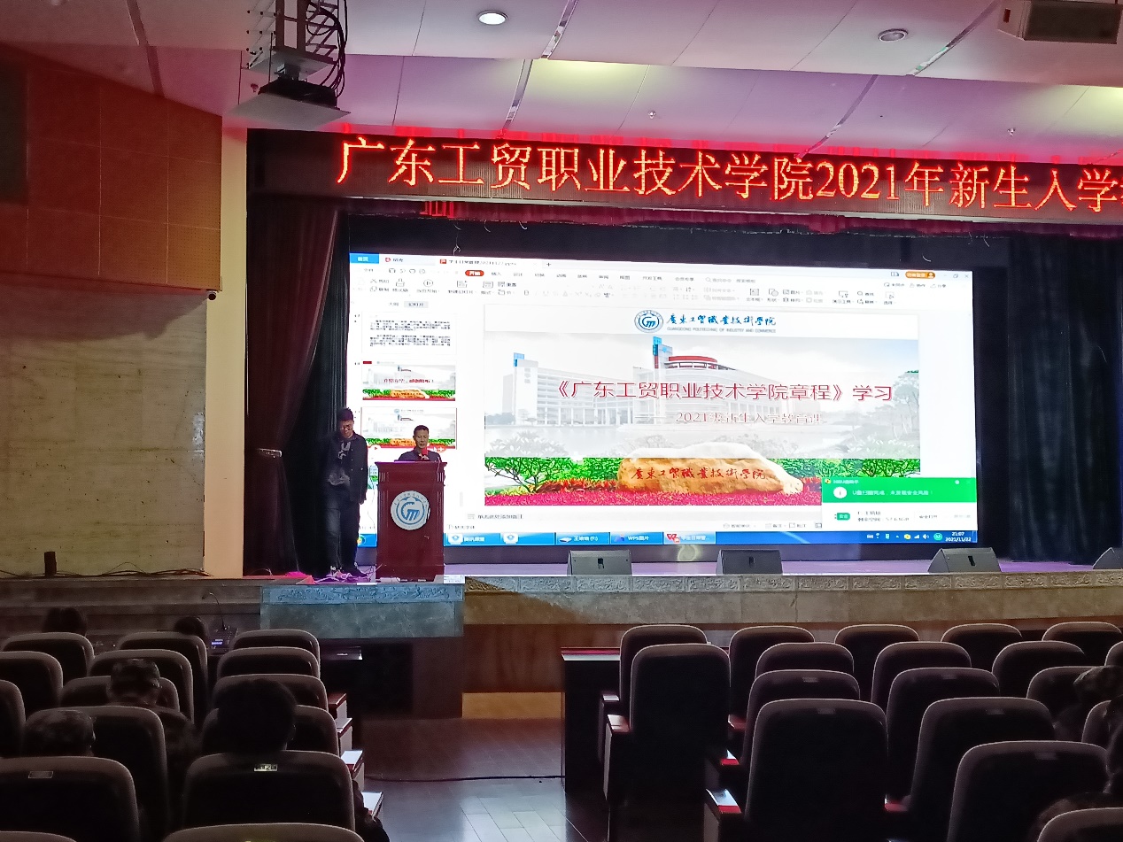 2021年11月22日晚7点,由学生处、总务处医务所主办、计算机学院协办的2021级新生防艾健康知识讲座、爱校荣校教育课,以及学校章程学习为主题的讲座在天河东校区礼堂开展。本次讲座并行采用了线上学习,以使我校各院新生均能在分会场同步学习。本次讲座由王培培辅导员主持。