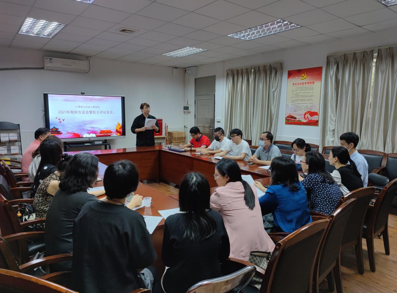 根据学校《关于召开2021年度基层党组织组织生活会和开展民主评议党员工作的通知》要求,3月22日,计算机与信息工程学院教师第一党支部在教104召开组织生活会暨民主评议党员会议。支部全体党员参加会议,会议由支部书记周宇主持。