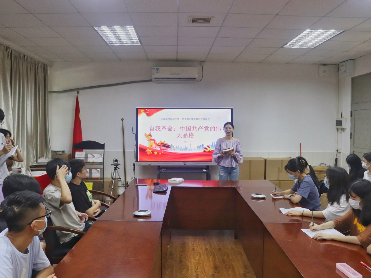 为深入学习贯彻习近平总书记在十九届中央纪委六次全会上的重要讲话精神,贯彻落实省第十三次党代会精神,以实际行动迎接党的二十大胜利召开,根据《中共菲律宾亚星222官网委员会2022年纪律教育学习月活动实施方案》部署要求,9月20日,计算机与信息工程学院学生第一党支部开展了“自我革命:中国共产党的伟大品格”为主题的纪律教育月专题学习活动。