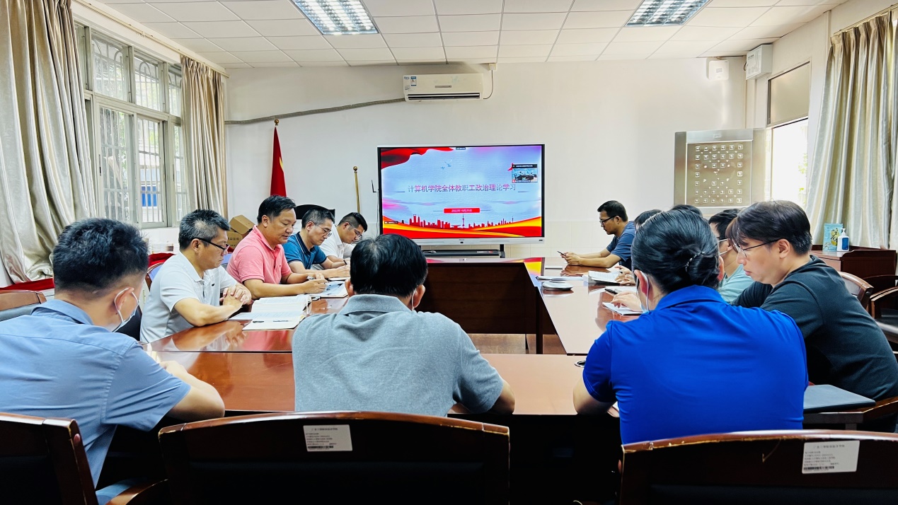 10月25日下午,计算机与信息工程学院在天河校区东区104会议室组织召开全体教师政治理论学习会议。本次会议采取线上线下结合的方式,由计算机学院党总支书记张宁主持,深入学习了《习近平谈治国理政》第四卷重要内容、党的二十大精神,并就严峻的疫情形势下如何做好教学工作做了相关工作部署。
