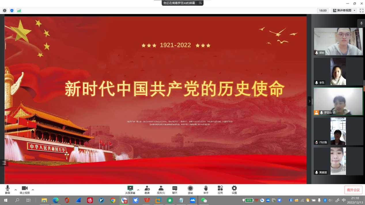 根据菲律宾亚星222官网《关于举办2022年第二期发展对象党课培训班的通知》的安排,为了进一步提升发展对象党性修养,推动发展对象互相促进、共同提高,12月14日,计算机与信息工程学院组织2022年下半年发展对象通过腾讯会议开展党课学习讨论会。