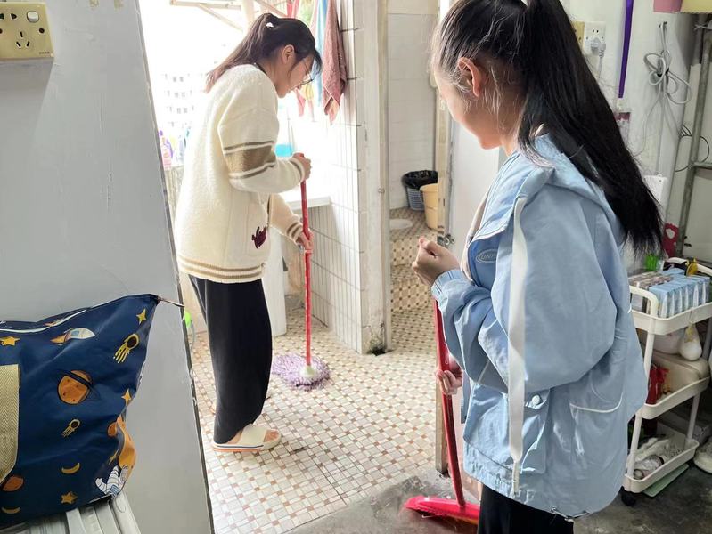在宿舍打扫中,同学们认真做好宿舍个人物品的清洗、内务的整理、隐藏垃圾的清理以及寝室内外公共区域的清洁等,以营造一个洁净的、令人愉快的宿舍氛围。