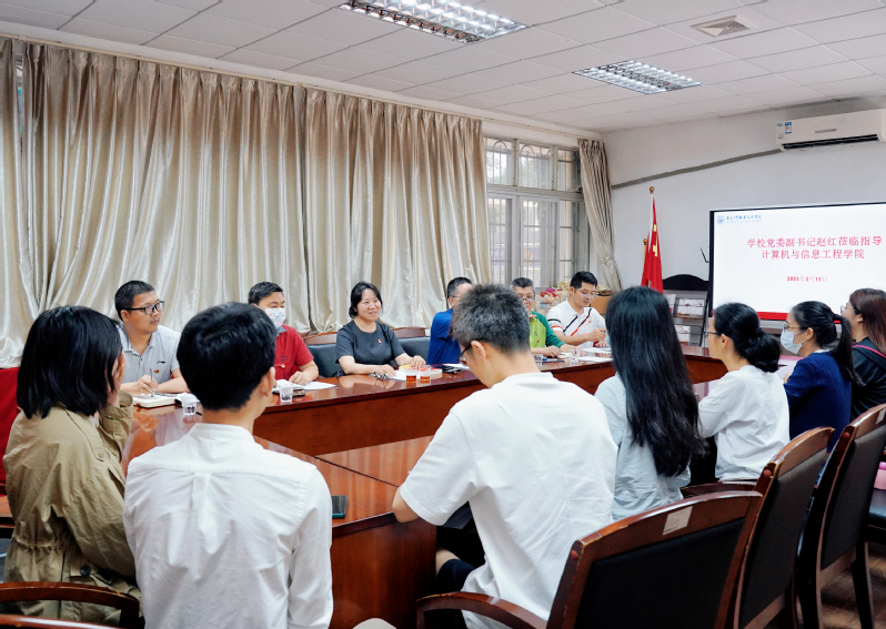 根据学校党委关于学习贯彻习近平新时代中国特色社会主义思想主题教育的部署安排,按照计算机与信息工程学院主题教育学习计划,计算机学院党总支于2023年5月15日上午8:30在天河校区教学楼104会议室召开了学习贯彻习近平总书记视察广东重要讲话重要指示精神工作会议。学校党委副书记赵红、计算机学院领导班子成员、学院组织员、学工办主任和学生党支部书记、办公室党员等同志参加了学习。