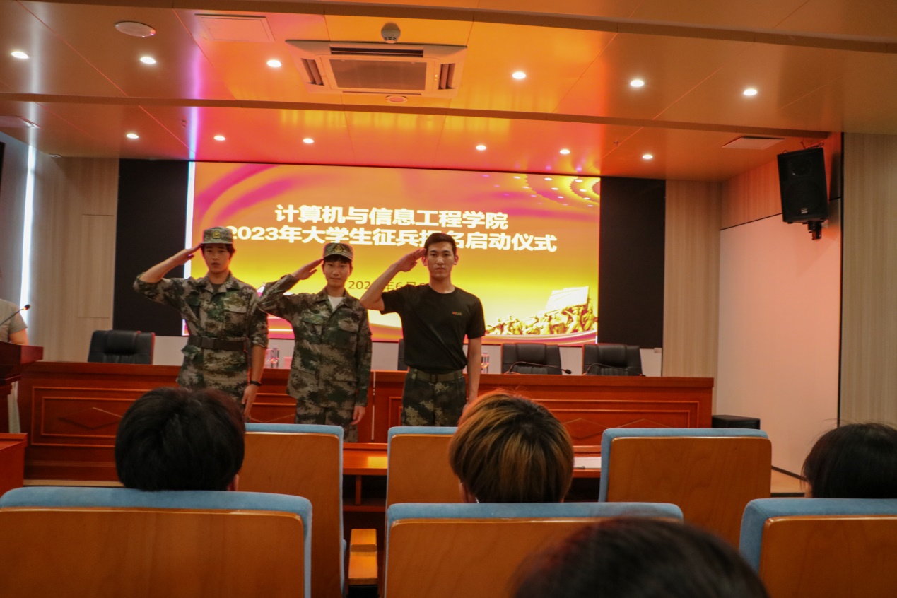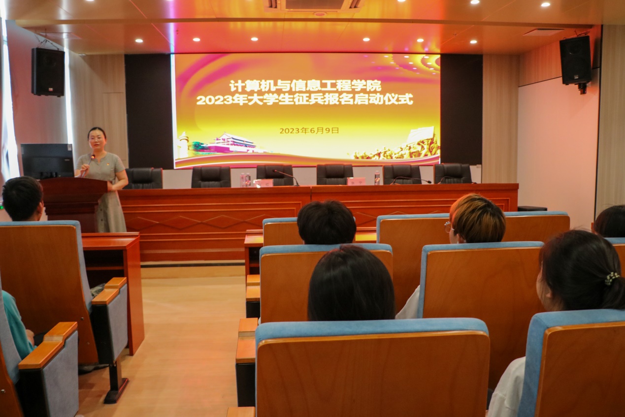 为响应国家号召,广泛开展大学生征兵宣传,鼓励大学生积极投身军营,计算机与信息工程学院于6月9日下午在天河东区实训楼一楼报告厅举行2023年大学生征兵报名启动仪式。学校党委副书记赵红,计算机学院党总支书记张宁、副书记张艳和学生代表参加了启动仪式。启动仪式由计算机学院辅导员苏建荣主持。