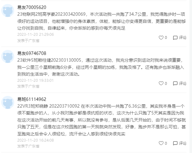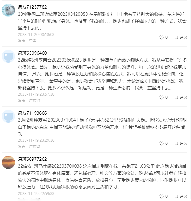 本次活动得到了同学们的积极响应。在易班轻应用上的页面浏览量达19000余次,访客数达12000余人,有6319条评论数据。每条用心的记录都在唤起同学们对自身健康的重视。