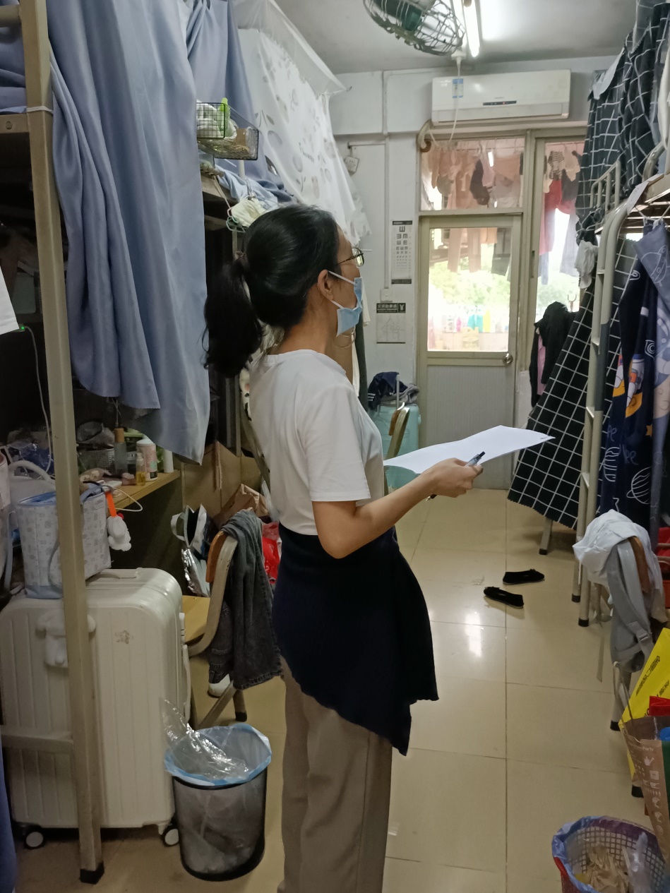 4月29日,计算机学院党总支副书记张艳带领检查小组成员深入天河校区学生宿舍进行全面检查,对宿舍内乱拉电线现象进行整改,对违规使用大功率电器现象批评教育。