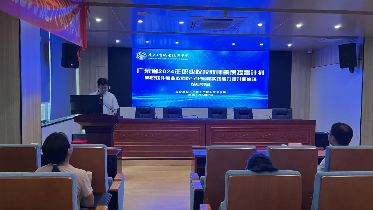 2024年7月28日上午,广东省2024年职业院校教师素质提高计划国家级示范性(第一批)培训项目——高职软件专业教师数字化赋能实践能力提升研修班(国培)结业典礼在我校天河校区举行。参加结业典礼的有:计算机与信息工程学院副院长鲁庆,计算机学院软件系主任及项目负责人黄培泉,本次国培班班主任代启兵,以及全体学员。
