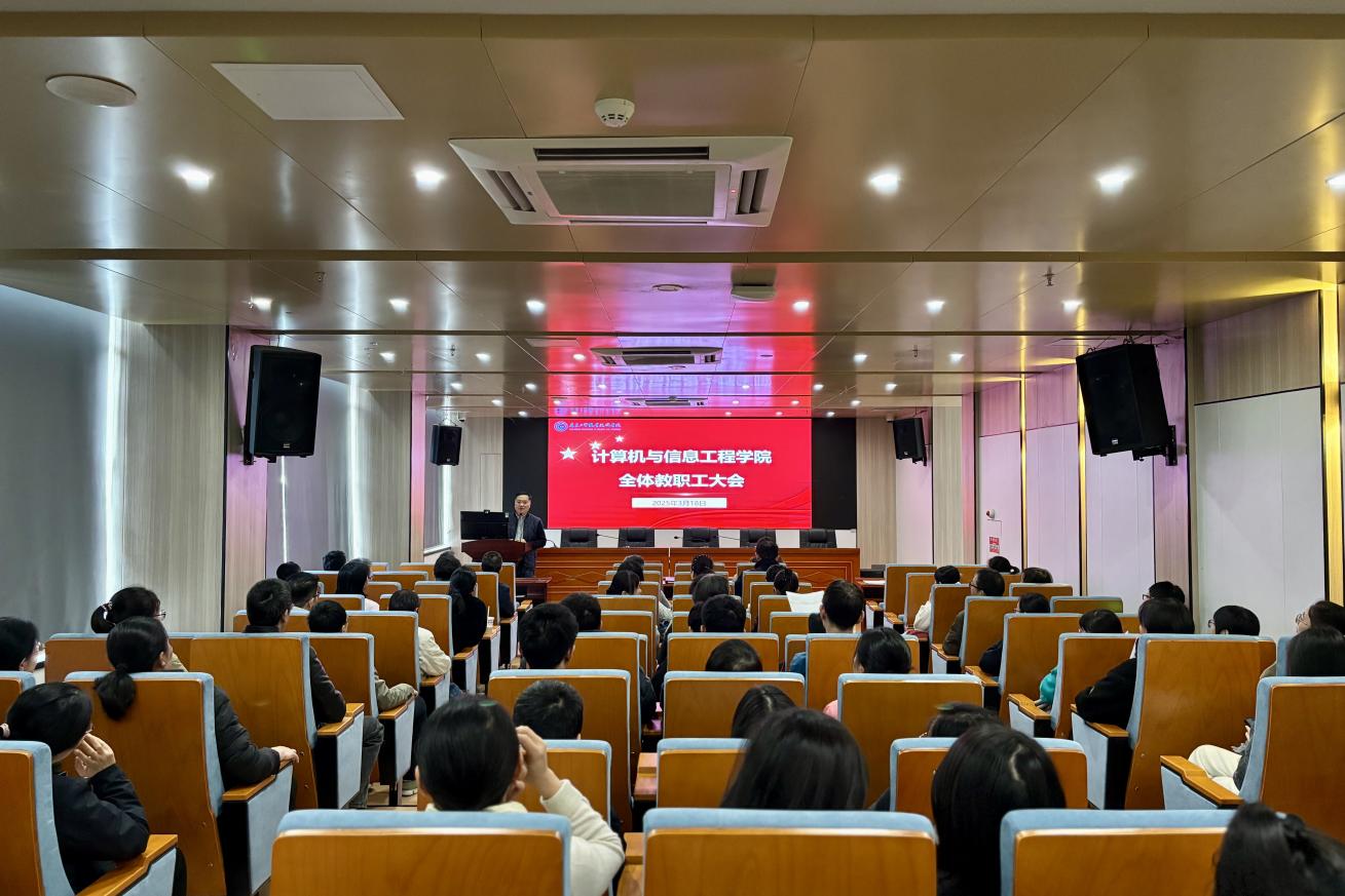 2025年3月18日下午,计算机与信息工程学院召开全体教职工大会暨政治理论学习。会议由学院党总支书记张宁主持,全体教职工参会。
