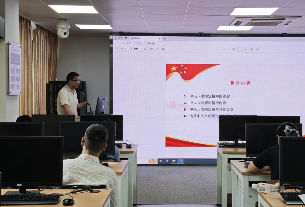 为扎实推进深入贯彻中央八项规定精神学习教育,5月13日下午,计算机学院教师第二党支部书记鲁庆以《严格贯彻落实中央八项规定及其实施细则精神》为题,开展了一场深入贯彻中央八项规定精神学习教育专题党课,支部全体党员参加了本次会议。