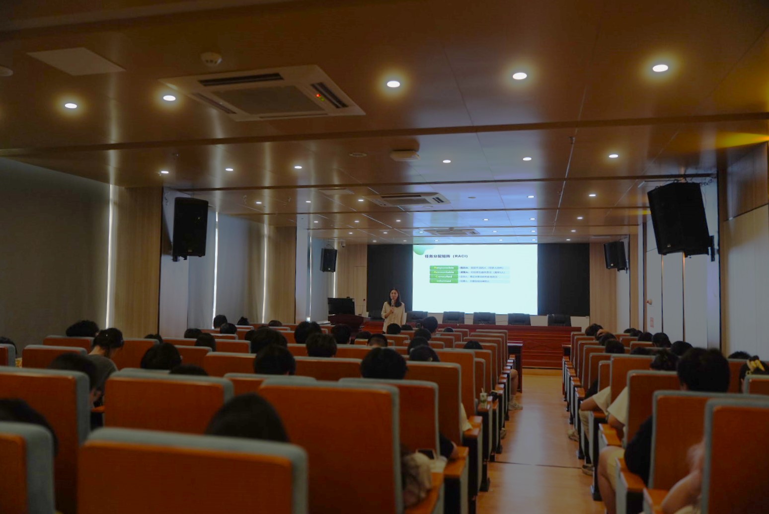 在培训过程中,刘老师凭借专业的沟通知识,向大家讲授了如何实现顺畅沟通与远离情绪化沟通的实用技巧。同时,刘老师也对心理委员与宿舍长表达了殷切的期待,她鼓励大家要时刻保持精细的洞察力和高度的责任感,主动关心同学们的心理健康状况,及时发现并上报有潜在心理问题的同学。
