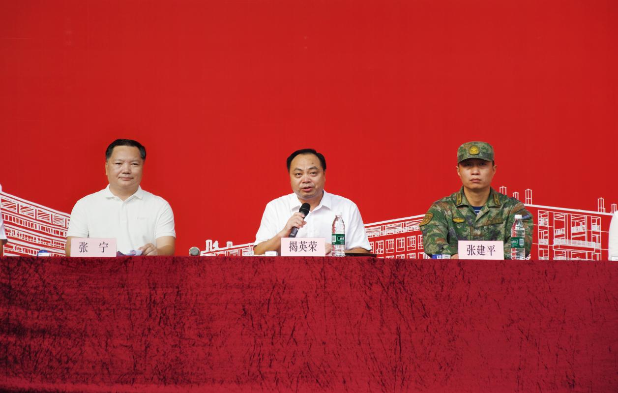 升旗仪式结束后,学校党委副书记揭英荣发表了新生军训动员讲话。他首先代表学校对承训教官致以诚挚敬意,向2025级新生致以问候与期盼。随后,揭英荣副书记结合新时代青年使命与校园精神,从“厚植家国情怀”“传承红色基因”“锤炼意志品质”三个维度,对新生提出殷切期望,鼓励大家以军训为起点,在训练中汲取精神力量、锤炼纪律意识、提升综合素质。同时,他提出了五点希望:一是要以“初心如磐”之态,明方向、正态度,摒弃“应付了事”心态,以严肃认真的态度投入每一次训练;二是要以“军令如山”之姿,严律己、听指挥,以军人标准要求自己,发扬拼搏精神,服从教官指令、听从老师安排;三是要以“见贤思齐”之心,守规矩、争模范,从整理内务、遵守作息等小事做起,维护校园秩序,争当训练标兵与纪律模范;四是要以“同舟共济”之情,聚合力、共成长,在训练中互帮互助,培养集体主义精神;五是要以“精益求精”之责,抓落实、保安全,学校相关部门将会做好教官和学生们的后勤保障,确保训练有强度、安全有保障。