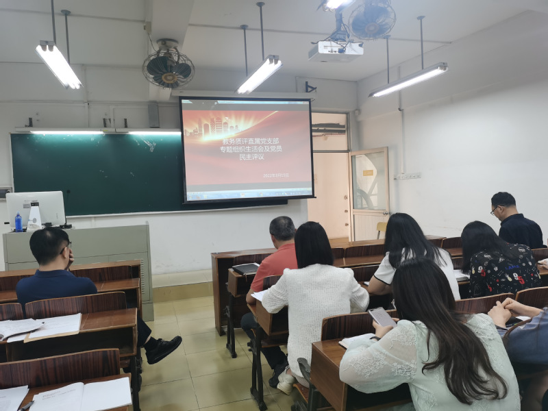 为深入学习贯彻2022年全国两会精神以及全国职业教育大会精神,学习习近平总书记在两个会议上的重要讲话,3月15日下午,教务质评直属党支部组织全体党员在天河校区西区综合楼406室召开政治理论学习和专题组织生活会。学校党委委员、副校长刘贻新作为支部党员出席会议,会议由支部书记王平主持。