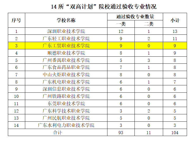 省教育厅本次共组织对31所高职院校的145个专业进行验收,其中137个专业通过验收,8个专业暂缓通过验收。经统计,省内14所“双高计划”院校通过验收专业数量为93个,占全省验收专业总数的64%;而我校通过验收的专业数量在14所“双高计划”院校中排名第3,名列省内双高院校前列(详见下表)。