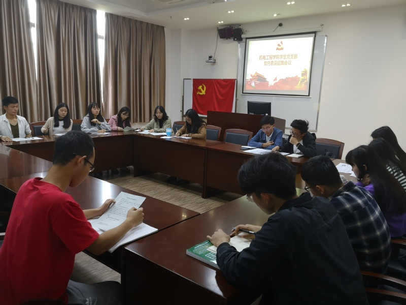 2019年3月27日,机电工程学院学生第一、第二党支部分别在明德楼1-214和1-215开展关于本学期党员发展的党内意见征集会议。机电工程学院学生第一党支部李慧颖同志和学生第二党支部书记史旭同志主持了本次会议,与会人员为机电工程学院学生党支部全体在校党员。