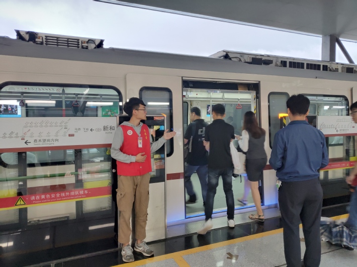 为了进一步严把发展党员“入口”关,提高发展对象综合素质,提升替奉献精神,增强社会责任感,2019年4月27日,机电工程学院学生党支部组织本学期发展对象到地铁新和站进行志愿服务。