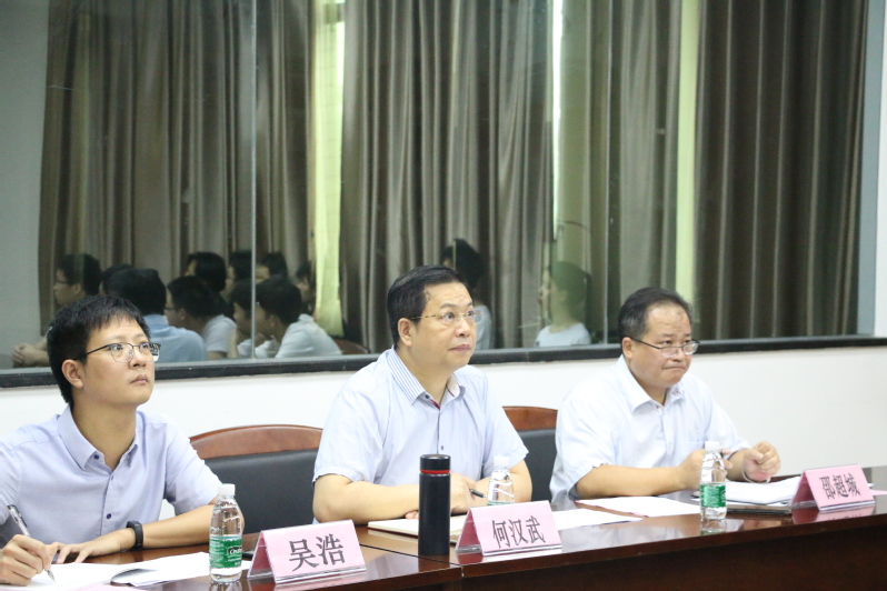 2019年5月31日上午在白云校区明德楼1-214,校长何汉武深入基层联系机电工程学院实践创新社,参与实践创新社座谈会。校办主任吴浩、机电工程学院领导班子、社团指导老师代表、社团学生代表等参加本次座谈会,会议由机电工程学院党总支书记邵超城主持。