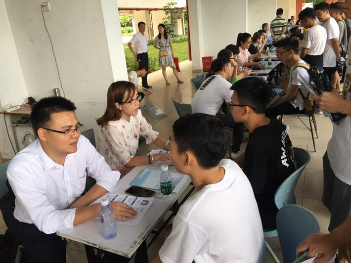2019年6月18日下午,机电工程学院在白云校区学生公寓12栋架空层举办2020届机电一体化专业教育教学改革双选会。经过机电工程学院学工办的遴选,本次双选会邀请了佛山海尔滚筒洗衣机有限公司、广州宝洁有限公司、广东百安机电消防安装工程有限公司、山西省工业设备安装集团有限公司广州分公司、佛山市南海定融风动工具实业有限公司等十六家优质企业,提供岗位400余个,共有150余名学生参加,学院领导党总支副书记梁超鹏、副院长游凯、机电一体化教研室主任胡应坤、辅导员等在现场指导学生选择合适的岗位。