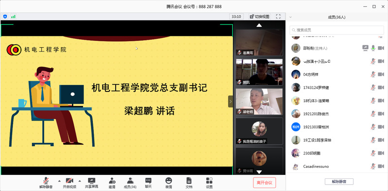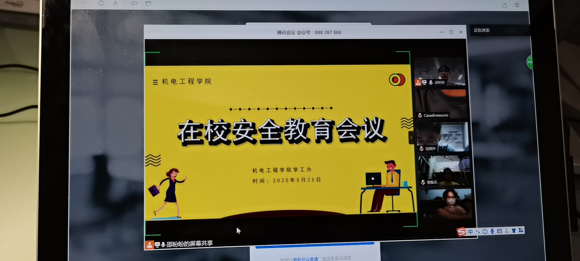 在疫情防控期间,为了加强对参加技能比赛和互联网+比赛的43位在校生的管理,保障学生的在校安全。机电工程学院于5月25日召开线上在校生安全教育会议。参与会议的有机电工程学院党总支副书记梁超鹏,学工办主任严惠琴,辅导员邵盼盼,吴文婷老师。