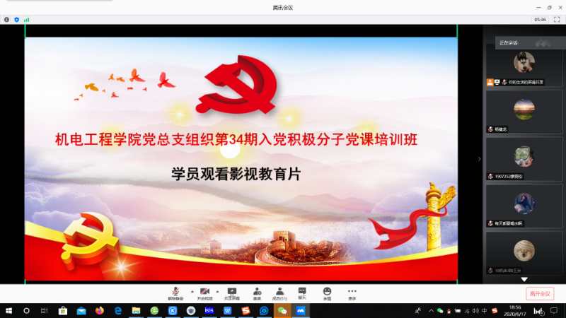 6月17日晚上19:00,为深入学习习近平主席关于做好新冠肺炎疫情防控工作的一系列重要决策,进一步加强对武汉新冠肺炎疫情的了解,深入体验防疫一线医护工作人员的真实状况,机电工程学院党总支组织第34期入党积极分子党课培训班学员观看了《为了人民——人民军队支援地方疫情防控纪实》影视教育片,党课培训班的学员积极参与其中。
