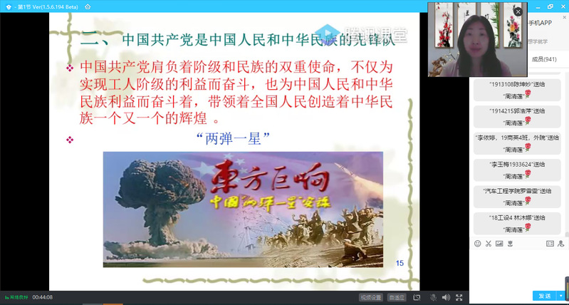 6月11日晚上19点,马克思主义学院教师晏意华为第34期入党积极分子党课培训班学员授课。晏意华紧紧围绕中国共产党的新生期、中国共产党的奋斗期、中国共产党的探索期、中国共产党逐步迈向成熟期等四个方面内容展开讲授,循序渐进,使学员们更加深入的了解和掌握党的历史和党的发展历程。晏意华希望入党积极分子端正入党动机,首先做到从思想上入党,加深对党的历史的理解,提高思想觉悟,早日投身到建设中国特色社会主义伟大事业中去。