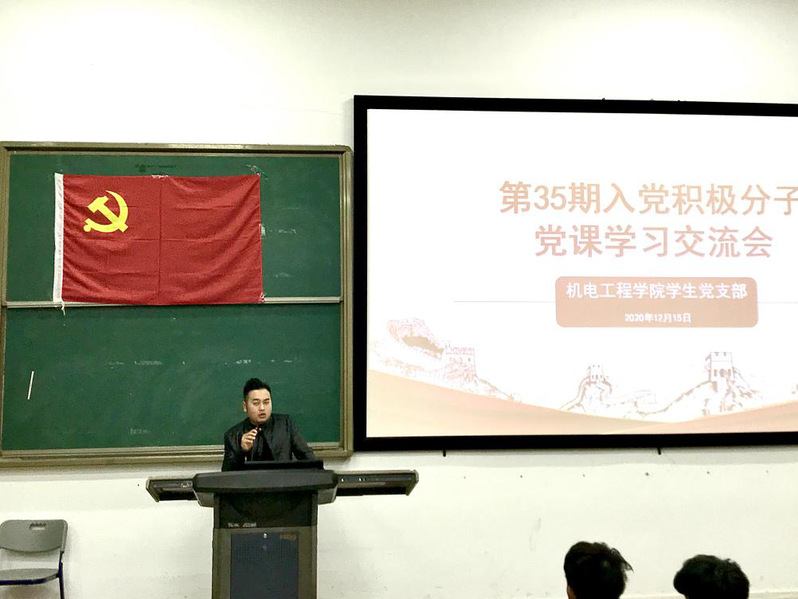 12月15日19时,机电工程学院分别在2-302、2-306召开第35期入党积极分子党课学习交流会。出席本次交流会的有机电工程学院学生第一党支部书记李慧颖同志、第35期入党积极分子党课学员。本次交流会由党支部书记李慧颖同志主持。