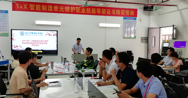 为全面贯彻落实《国家职业教育改革实施方案》精神,加快推进职业教育三教(教师、教材、教法)改革,提升智能制造及工业机器人领域的教师教学能力与专业素养,促进专业建设融合与改进,进一步深化产教融合、校企合作逐步打造一批支撑制造强国技术技能人才培养需求的双师型队伍。5月20日,由武汉华中数控股份有限公司主办,机电工程学院承办“1+X智能制造单元维护”师资培训班。
