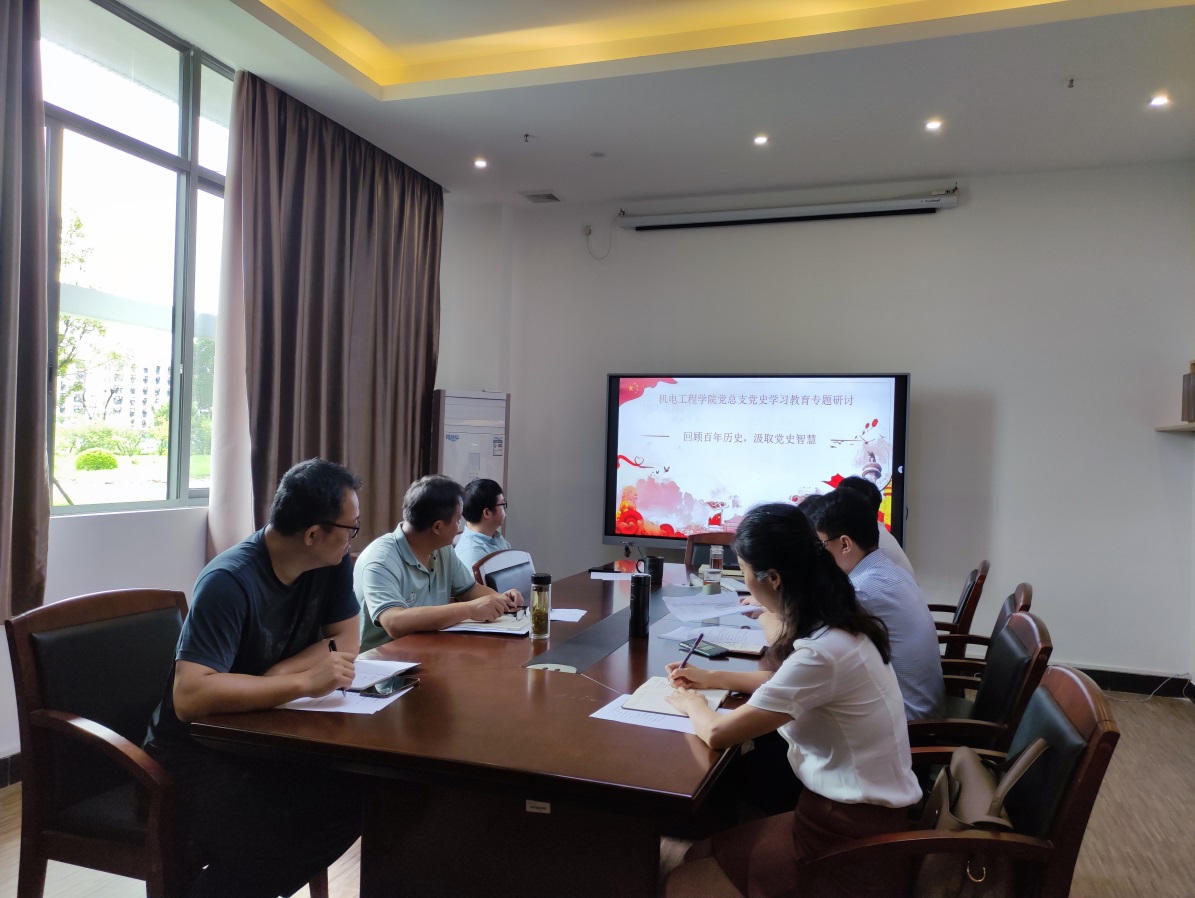 6月4日上午,机电工程学院党总支在明德楼1区217开展以“回顾百年历史,汲取党史智慧”为主题的党史学习专题研讨会。参会人员有机电工程学院党总支书记邵超城,党总支副书记、党总支副书记、院长徐勇军,党总支副书记梁超鹏、支委丘永亮、游凯、侯聪玲、严惠琴等。会议由邵超城主持。