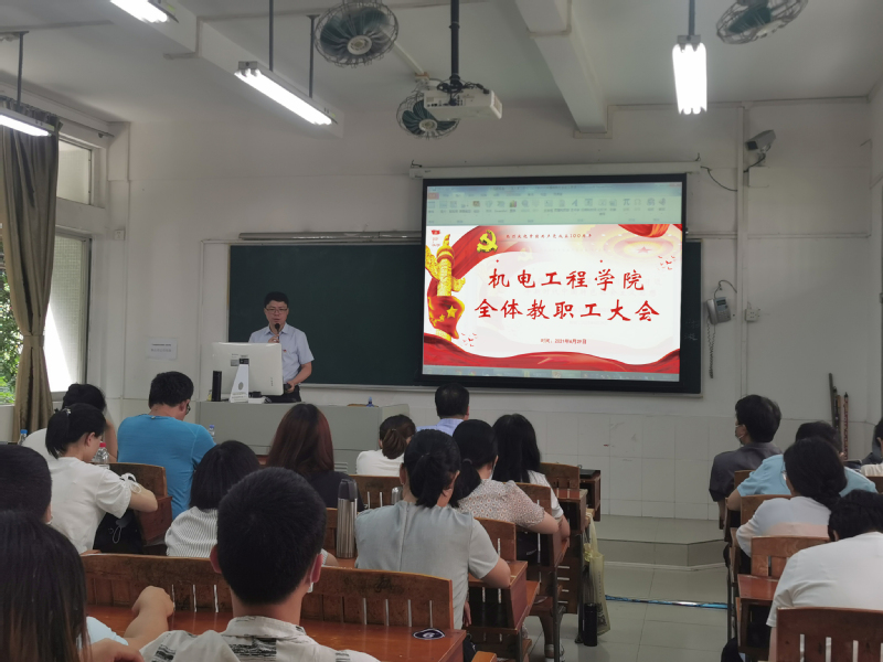 2021年6月29日,机电工程学院于天河校区教学楼202课室召开了全体教职工会议。机电工程学院领导班子及全体教师参加会议,会议由机电工程学院党总支书记邵超城主持。