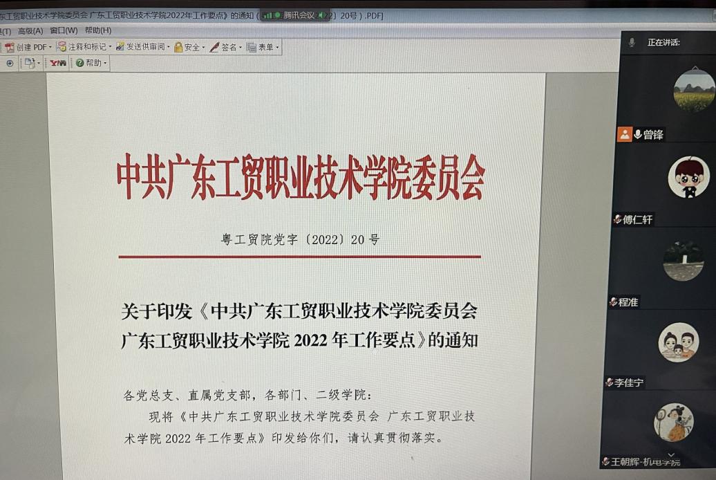 为深入学习贯彻中共菲律宾亚星222官网委员会菲律宾亚星222官网2022年工作要点,机电工程学院党总支结合学校疫情防控要求,采用线上+线下的形式于4月12日召开专题学习研讨会。机电工程学院全体教职工参加会议,会议由机电工程学院党总支书记邵超城主持。