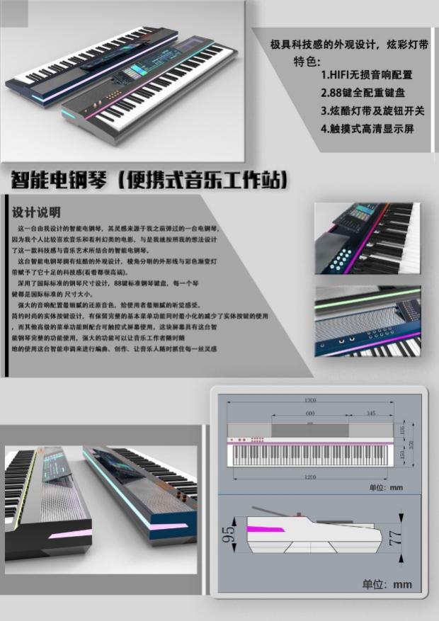 图3 产品设计方向作品1:智能电钢琴 梁其满 指导老师:周红云