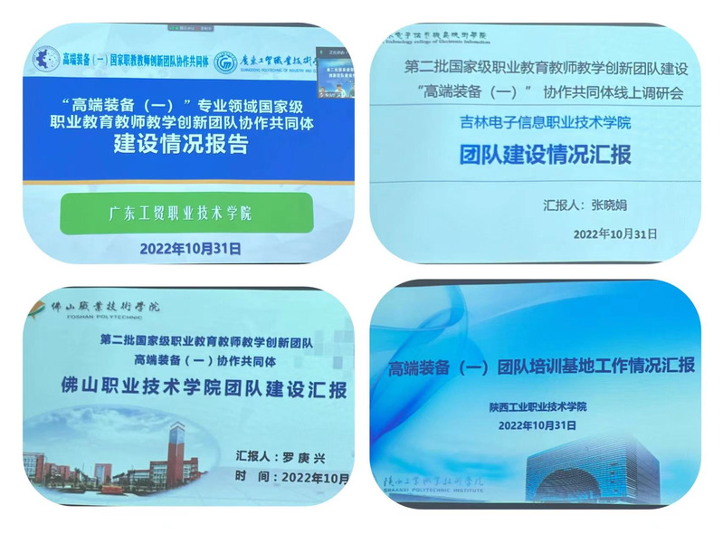 吉林电子信息职业技术学院张晓娟副校长从团队基本情况、计划完成情况、工作开展情况、取得成果经验和存在的问题等五个方面介绍团队建设情况;佛山职业技术学院督导办罗庚兴主任从建设举措、建设成效、问题及改进三个方面介绍团队建设情况;陕西工业职业技术学院电气工程学院夏东盛院长从培训基地及共同体情况、培训开展情况、存在的问题和困难、下一步工作思路四个方面介绍培训基地指导共同体及其成员单位团队建设情况。