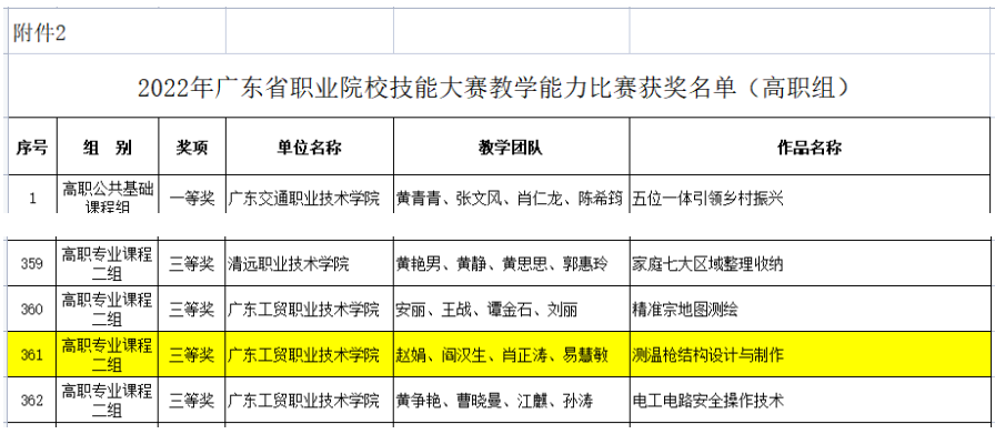 1 | 测温枪结构设计与制作 | 2022年广东省职业院校技能大赛教学能力比赛三等奖 | 2022.09 | 赵娟、阎汉生、肖正涛、易慧敏 |