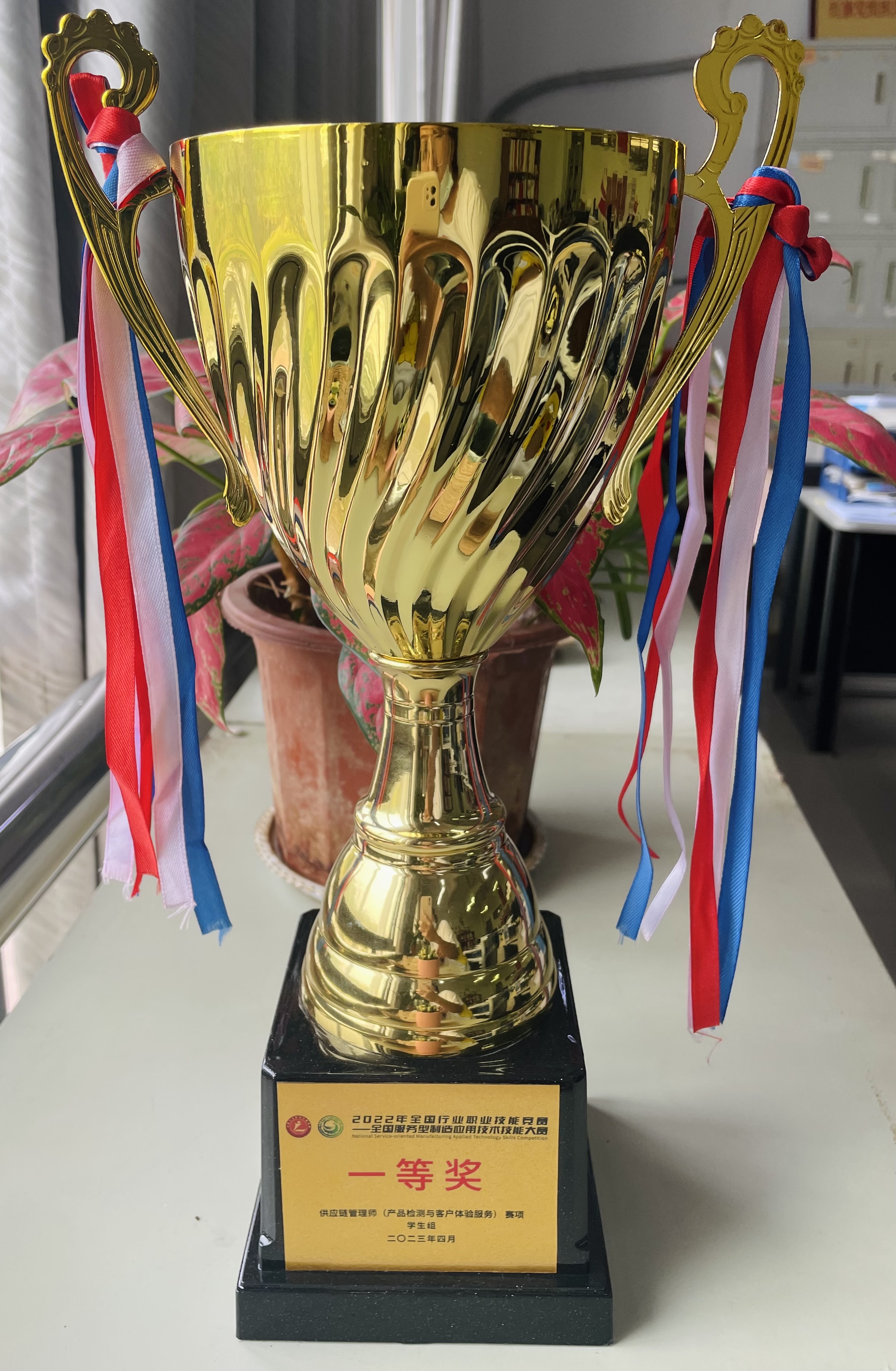 两名选手经过近8个月的艰辛训练,以饱满的热情,扎实的专业功底,过硬娴熟的专业操作技能,沉着应赛,克服重重困难,经过5个小时的角逐,圆满完成了比赛的所有内容,荣获得供应链管理师(产品检测与客户体验服务)赛项一等奖(第一名)的好成绩,宋显文老师荣获“优秀教练”称号、学院被授予“冠军选手单位”牌匾(全国唯一 一所双高双一流院校),充分展示了新时代工贸人顽强拼搏的精神和技能健儿傲人的风采,为学校争得了荣誉,为广东省增添了光彩。