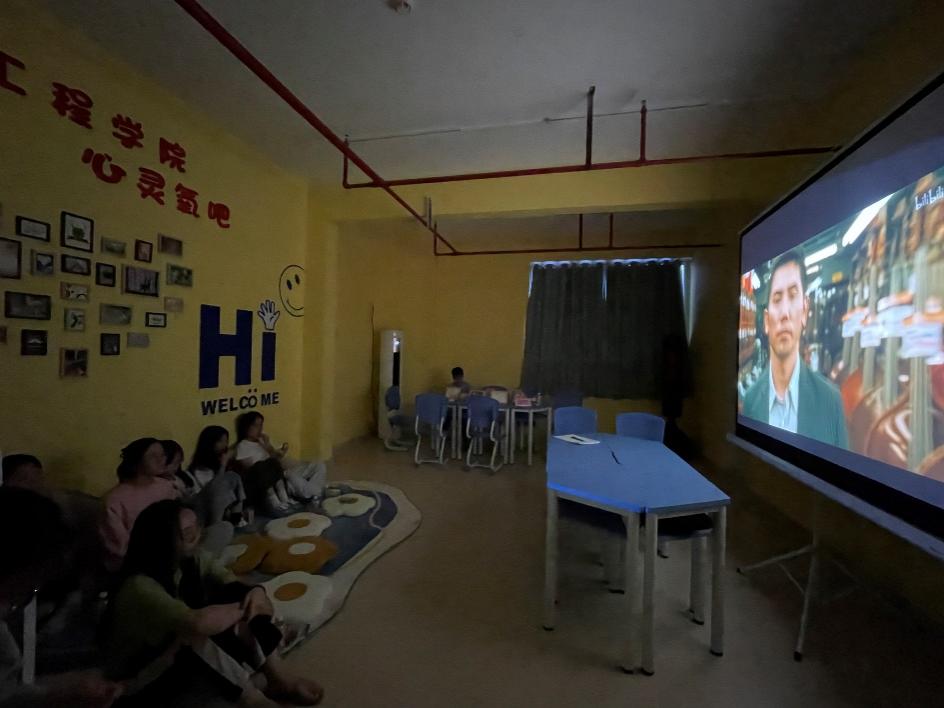 观影前,心理辅导站干事调试投影仪,调节观影区域和和房间亮度,确保电影正常播放。报名观影的同学陆续到达现场、面对面建群、填写来访登记表后,心理辅导站干事向大家分发可口的零食和饮料。