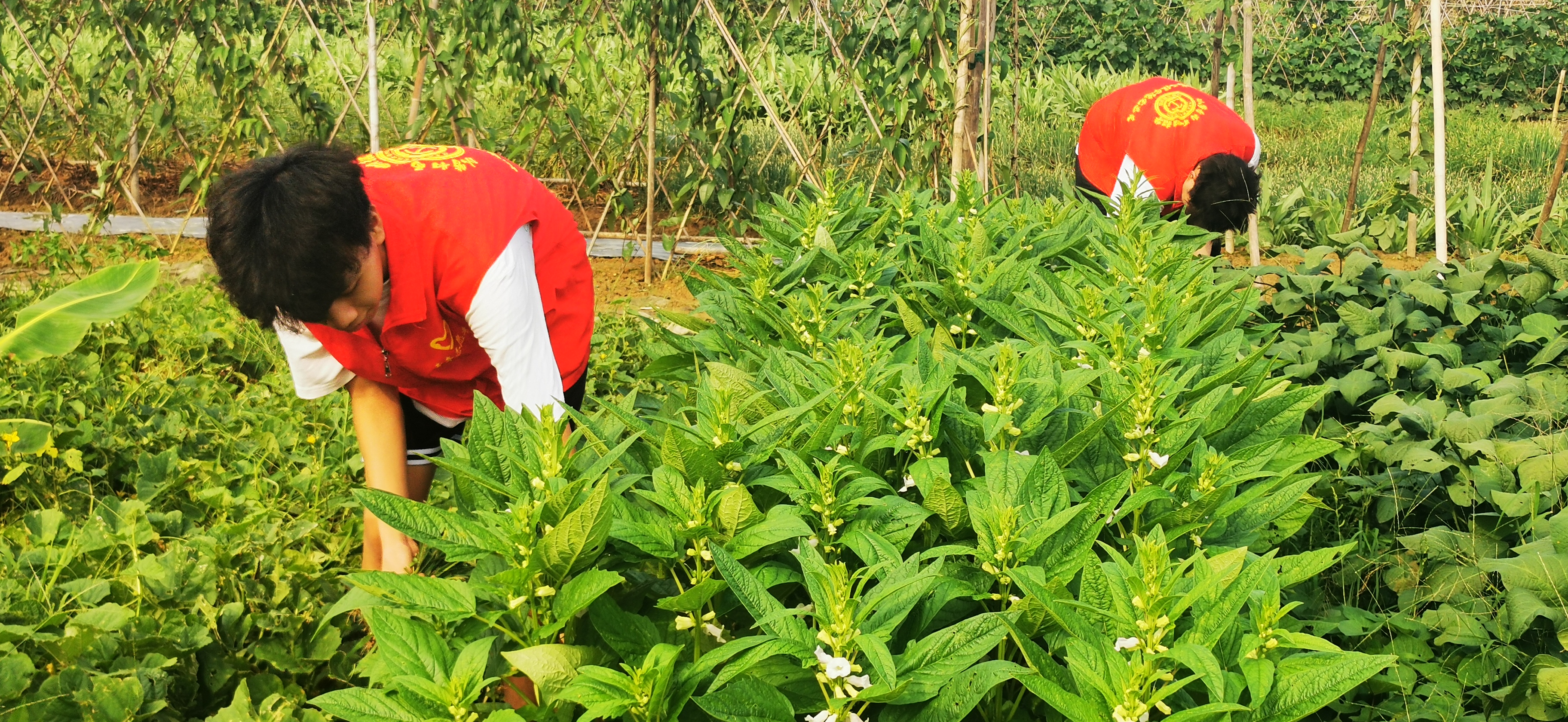 眼下,正是杂草丛生的时节。15:30分,所有人员集合后一同前往湴湖村,同农民阿姨一起除杂草,除虫,所有学生在农民的指导、带领下,齐心协力除好每一根草,田地里一派繁忙的景象。