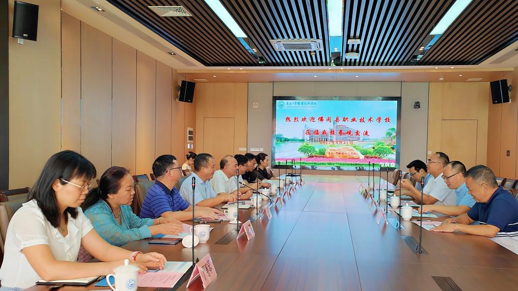 9月21日上午,佛冈县职业技术学校党政领导班子在党委副书记、校长何继扬带领下到我校进行交流座谈。我校党委副书记、纪委书记夏韩辉,机电工程学院党总支书记邵超城,党总支副书记、院长徐勇军,党总支副书记梁超鹏,副院长丘永亮等对何继扬一行的到来表示热烈欢迎。