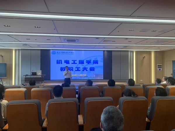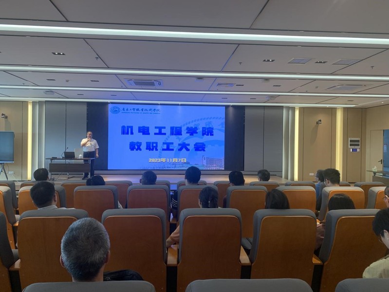 11月7日下午2时,机电工程学院于白云校区图书信息楼第一会议室召开教职工大会暨政治理论专题学习会,本次会议由机电工程学院党总支书记邵超城主持,党委委员、副校长徐勇军和机电工程学院全体教师参会。