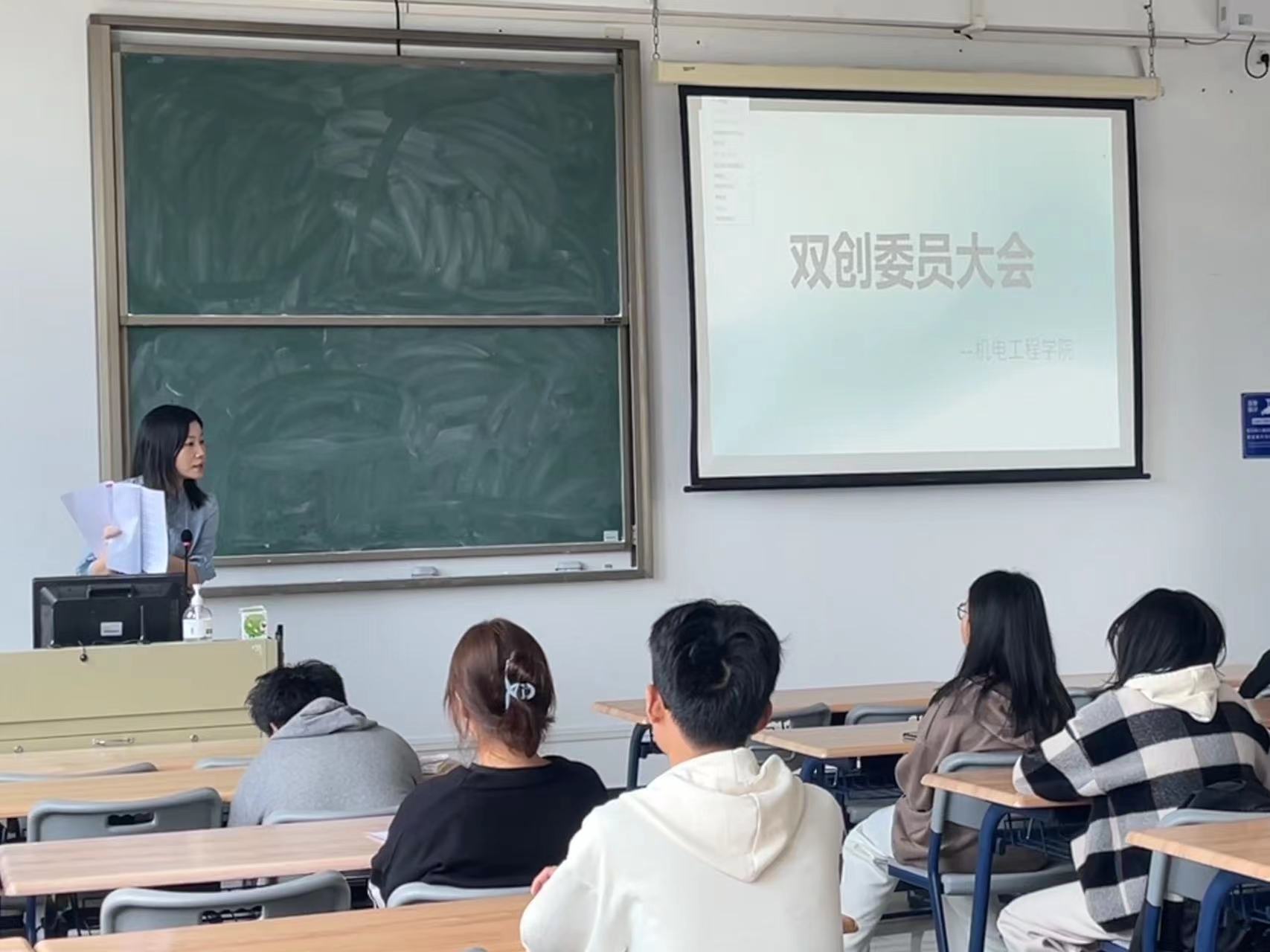 2023年11月29日10点机电工程学院在明德楼1-713召开双创委员大会,此次会议由辅导员汤敏,机电工程学院助辅和23级全体双创委员参加。