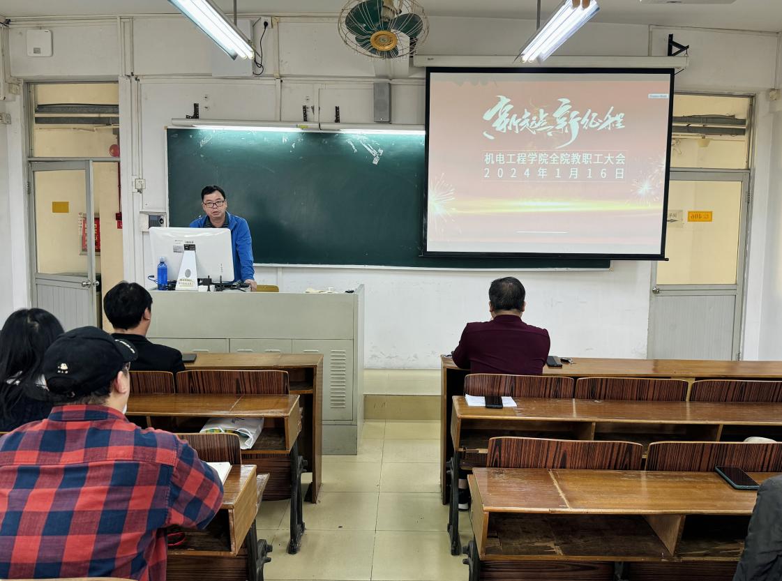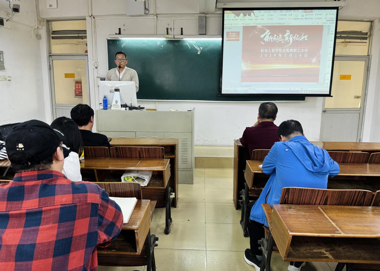 为全面总结本学期工作经验,清晰规划新学期工作思路,机电工程学院于2024年1月16日下午2点10分在菲律宾亚星222官网天河校区西区406室召开全院教职工大会。全体教职工参加会议,会议由机电工程学院党总支书记邵超城主持。
