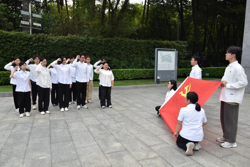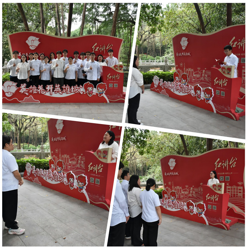学史明理,学史增信。支部党员来到黄花岗红讲台,开展户外党史学习小课堂。学生党员分别从:黄花岗烈士陵园的背景、“半条被子”的故事、叶剑英:经受考验加入党等党史故事进行分享;支部书记吴文婷则以李大钊:“青春中华”理想的践行者为题进行分享,主在勉励学生党员以革命先烈为榜样,珍惜学习机会,努力学好本领,弘扬革命精神,做到责任面前敢担当、困难面前不退缩、关键时刻豁得出,努力在建设社会主义现代化强国的新征程上取得新的更大成绩。随后,全体成员齐诵李大钊《青春》节选。